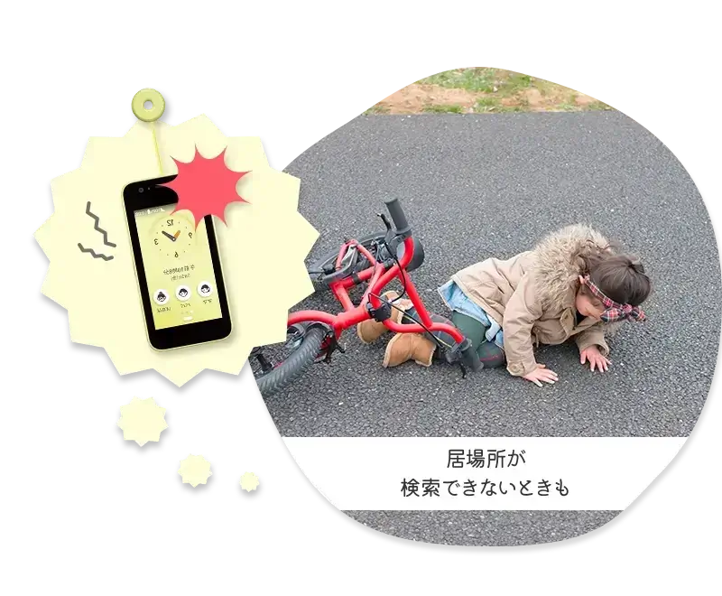 ただし、紛失した端末の「位置提供設定」が「位置提供ON」に設定されている必要があります。キッズケータイは標準で「位置提供ON」に設定されています。 端末の電源がOFFの場合や電波が悪いところにいる場合は検索できない可能性があります。